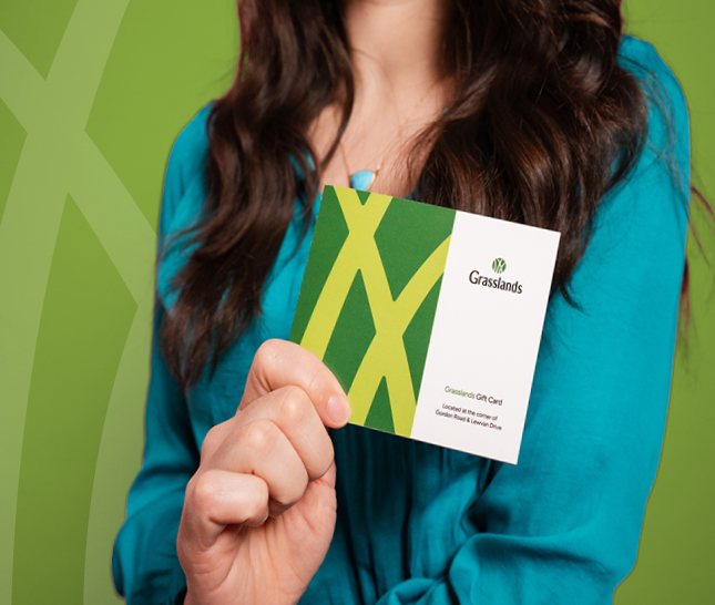 Purchase a Grasslands Gift Card online & we’ll have it delivered right to the recipient.